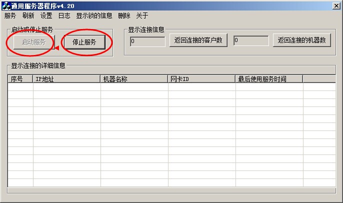 ,彈出通用服務(wù)器程序窗口,先點(diǎn)停止服務(wù),然后點(diǎn)啟動(dòng)服務(wù)(參照下圖)