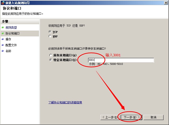 輸入3001,點(diǎn)下一步