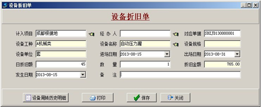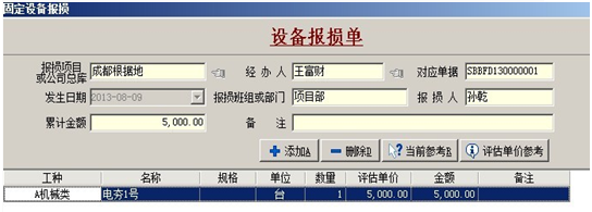 2.【設備報損成本】也可稱為設備報廢成本,是指公司設備徹底報廢后根據估算的殘值,計入某項目成本。成本根據設備報損單生成,該成本會自動計入填寫單據時報損單所選擇的項目。