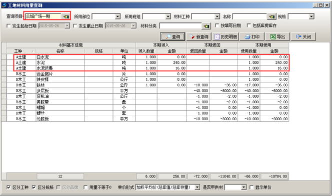 執行完成工程項目材料采購流程之后可在對應的倉庫中查詢到對應的材料庫存,如圖: