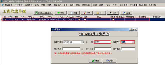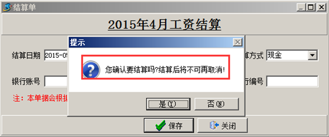 注:工資發(fā)放單整單結(jié)算之后不可再取消。