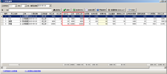 工程管理軟件工資表生成之后員工在不同項(xiàng)目上出勤的工資會(huì)生成到同一張工資表中,如圖: