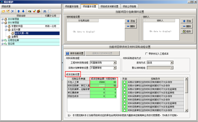 在“工程管理”-“項目維護”中進行“項目預算”的設置。如圖所示: