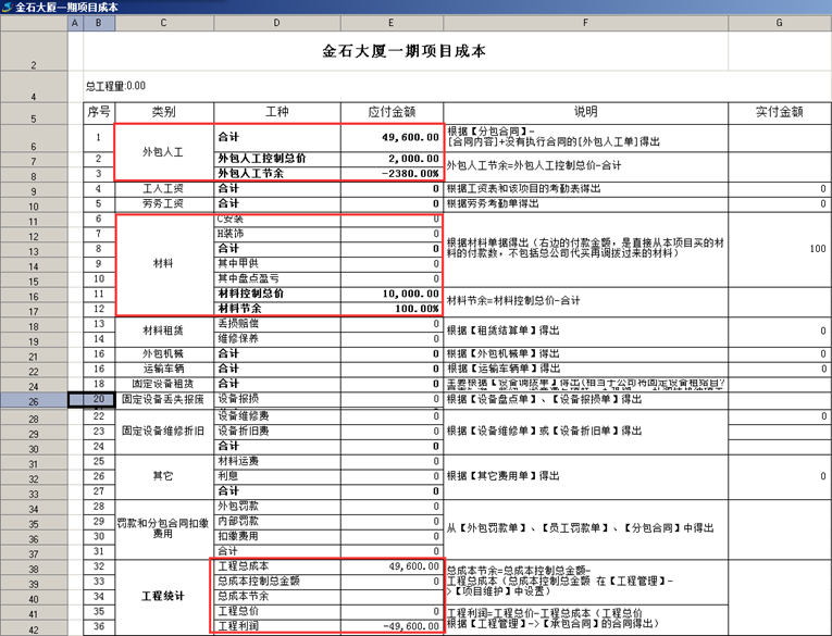 5、項目成本預算設置及實際發生統計