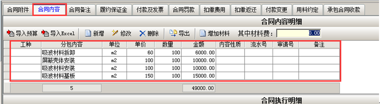 分包合同建立完成之后,可將合同內容添加導入到系統中。導入之前將格式設置成系統要求的格式。如圖所示:
