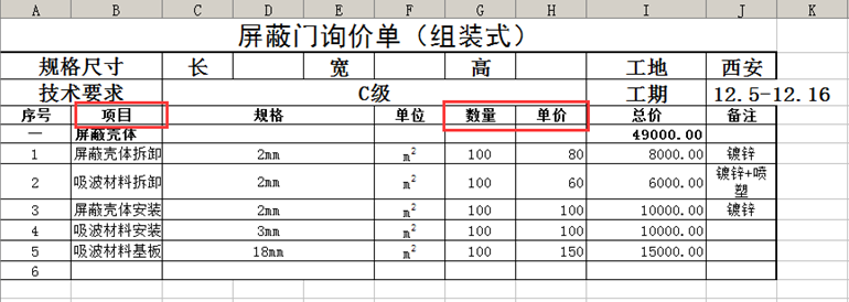 和分包商:“第一建筑公司”簽訂了“屏蔽殼體”的安裝合同,原始金額49000元,先預付款30%,中間發生過一次合同變更(增加了600元)。完工驗收后支付到95%,另外5%為質保金。