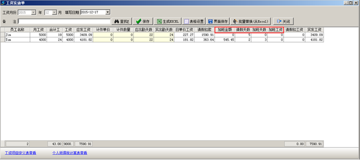 (若無加班工資計算公式則直接將“加班金額”手動輸入)