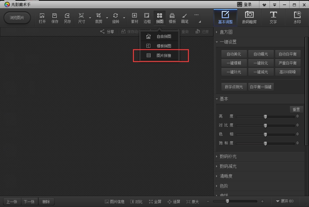 1.我們打開光影魔術手軟件,我們點擊拼圖里面的圖片拼接