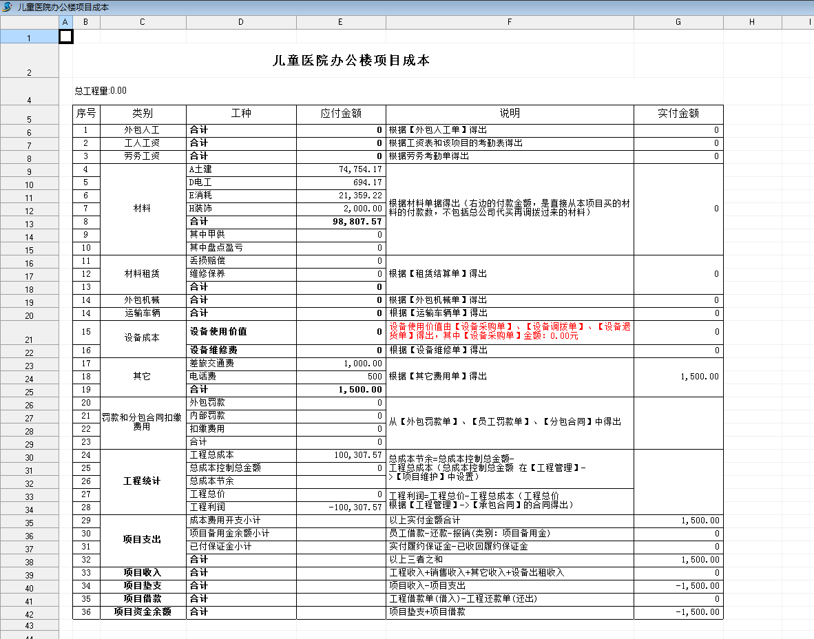 我們以項目成本利潤為例,下圖為“不含稅金額計算成本”查詢結果: