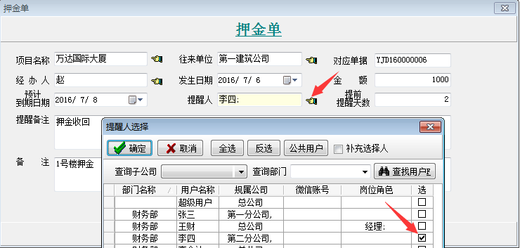 1.建立押金單、押金提醒(導(dǎo)入附件)->審核確認(rèn)(支持多級審核)