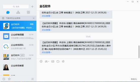 此時負責人會收到微信提醒,提醒其對該項目進行跟蹤及維修情況的必要登記,如下圖