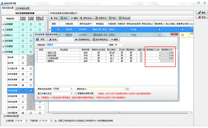 操作界面如下圖,可以為每個(gè)崗位進(jìn)行審核限時(shí)。