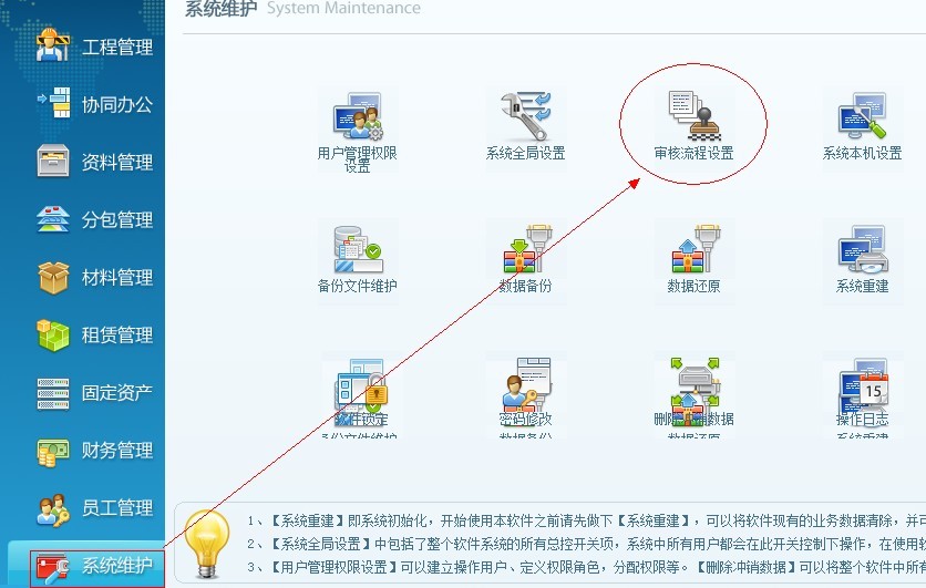 在工程項目管理軟件(集團版)中,有些業務單據需多級審核(如:采購計劃單、分包驗收單、員工請款單、簽呈、合同等),審核流程就是指為這些業務單據單獨設置的審核順序。如下圖:
