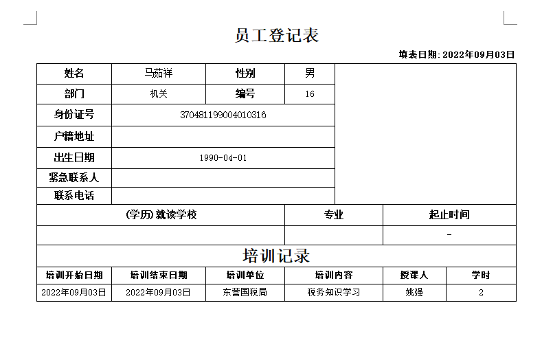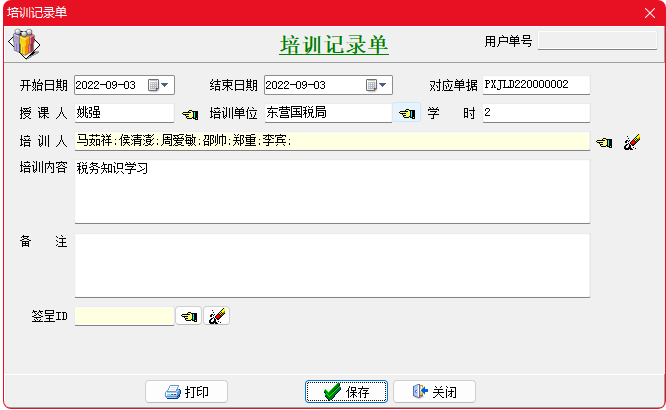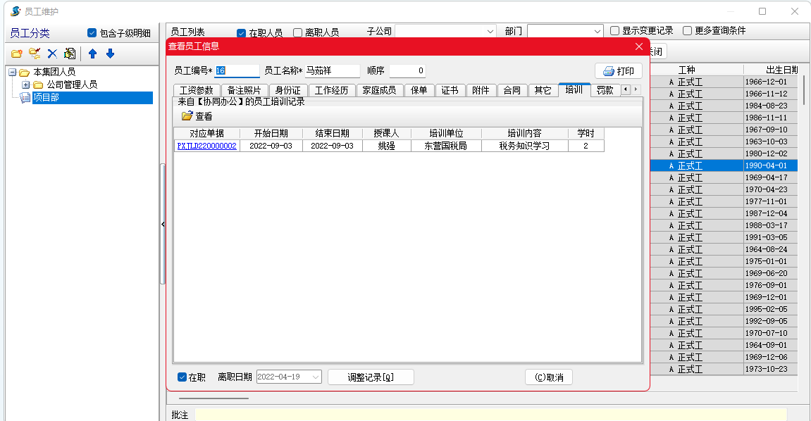 金石工程項目管理軟件可以填寫員工培訓記錄,并生成到員工維護。