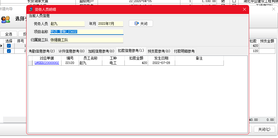 金石工程管理軟件新增勞務扣款單