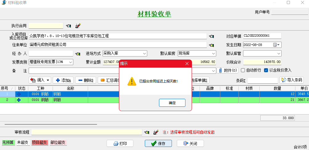 為了控制單據(jù)延遲上報(bào)時(shí)間,金石工程項(xiàng)目管理軟件專門(mén)開(kāi)發(fā)了機(jī)械日?qǐng)?bào)單、材料采購(gòu)單、外包機(jī)械單、其它費(fèi)用單、外包人工單、采購(gòu)變更單、分包變更單、租賃變更單、其它變更單、銷售變更單等單據(jù)延遲上報(bào)天數(shù)設(shè)置。也就是企業(yè)可以自定義單據(jù)延遲上報(bào)天數(shù),單據(jù)發(fā)生日期超出上報(bào)天數(shù)時(shí)不允許保存。