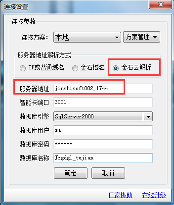在做連接設置時直接選擇使用IP或計算機名稱,不要選擇金石云解析。如下圖是金萬維解析: