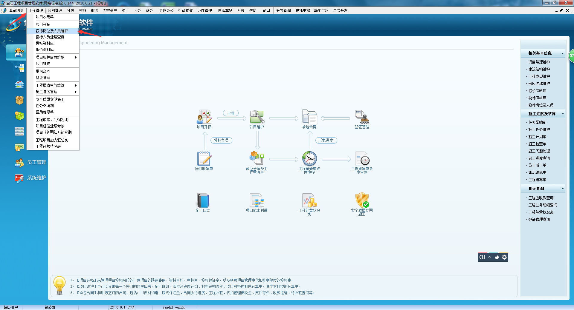 首先在軟件菜單欄點(diǎn)擊【工程管理】,打開【投標(biāo)崗位及人員維護(hù)】,如下圖: