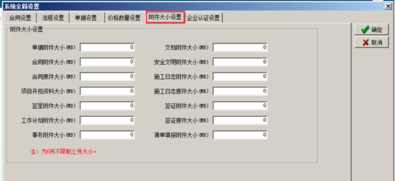 進入系統的“系統維護”-“系統全局設置”彈出系統全局設置的對話框,點擊“合同設置”,在對應的復選框打鉤代表合同受對應開關的控制,如圖: