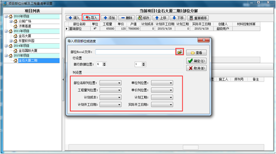 “部位分解及工程量清單”是用來劃分項目部位(分部分項工程),及設(shè)置工程量清單模塊。