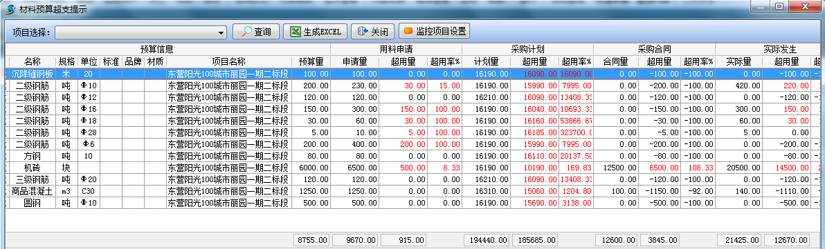 *注:上圖中字體變?yōu)榧t色字體的為超與預(yù)算對(duì)比量,負(fù)數(shù)數(shù)值為在預(yù)算范圍內(nèi)