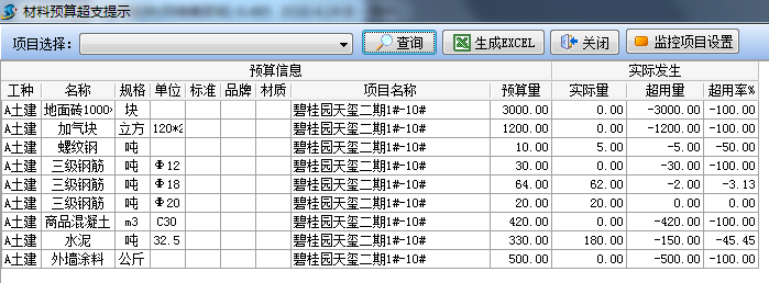預(yù)算超支提示(按照項(xiàng)目監(jiān)控超支)