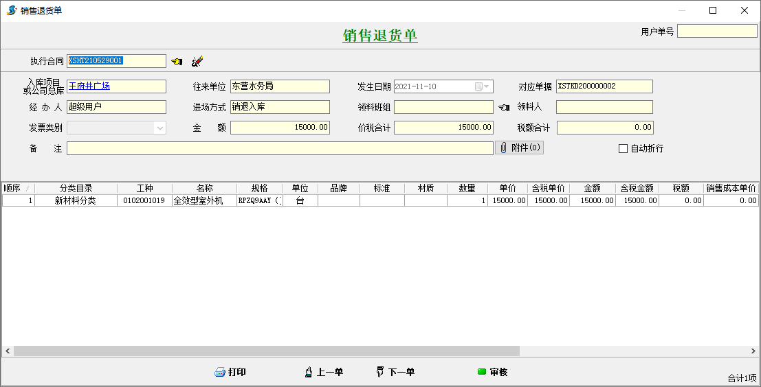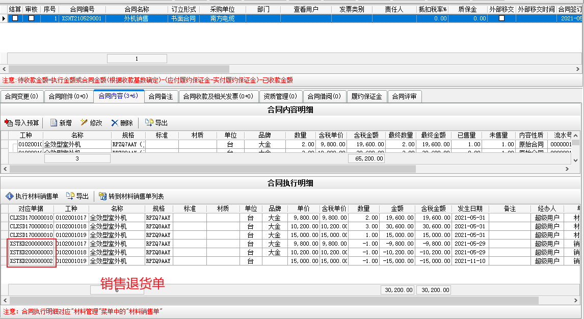 純粹的銷售業務中,增加了【銷售退貨單】。目的是為了完善銷售合同的執行明細,補足原先銷售業務出現退貨時,無法直接在銷售合同【合同內容明細】查看退貨的材料明細情況。