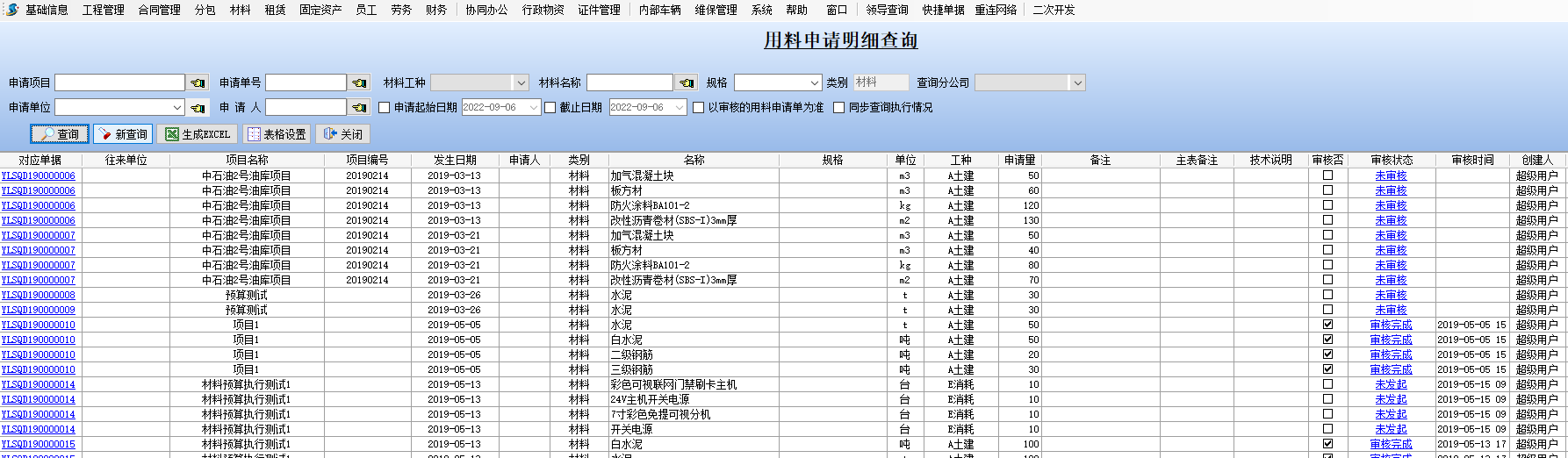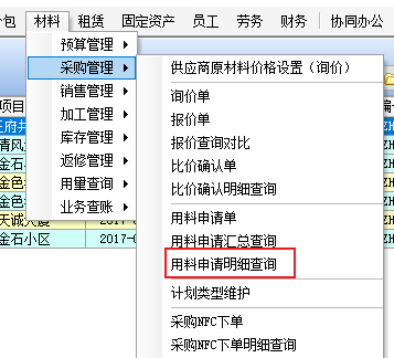 金石工程管理軟件材料管理模塊新增:用料申請明細(xì)查詢