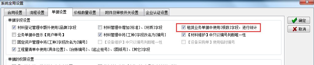 1、在【系統(tǒng)全局設(shè)置】的【單據(jù)設(shè)置】中,有一個開關(guān)在租賃管理中,特別是在結(jié)算統(tǒng)計時非常有用,這里做特別說明。如下圖所示