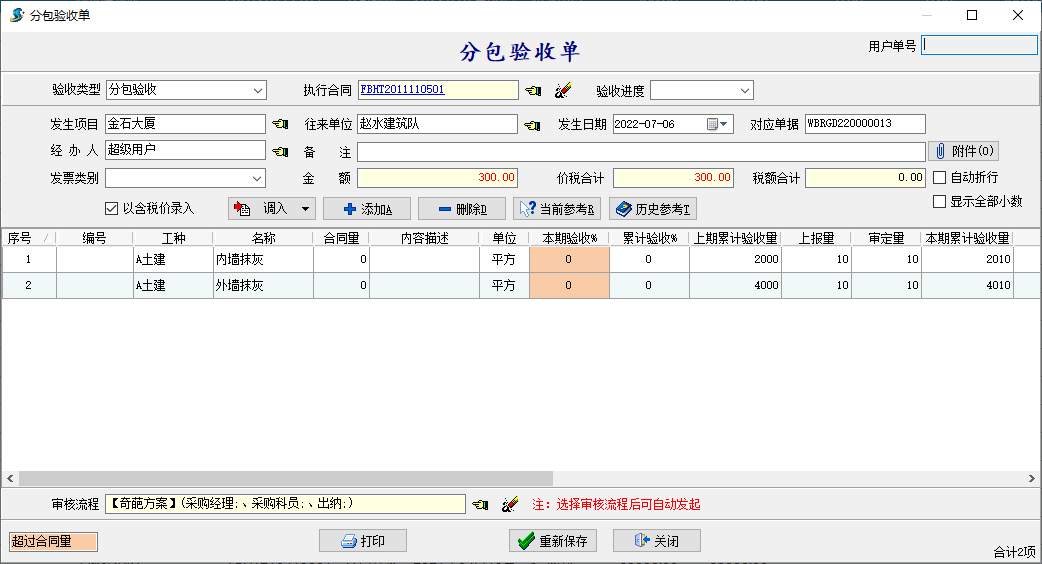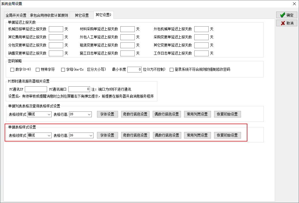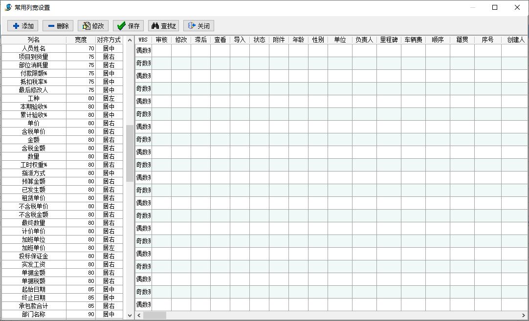 金石工程管理軟件新增單據表格樣式設置