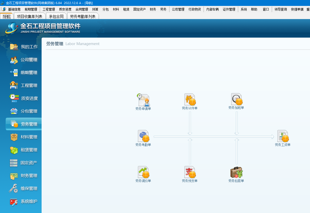 導航增加公司管理、前期管理、勞務管理、維保管理。導航界面可以調整顯示模塊。