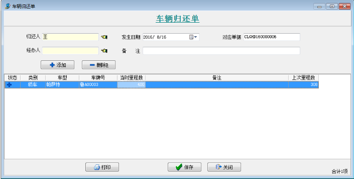 日常車輛借還業(yè)務(wù)— 主要包括【車輛借出單】【車輛里程單】【車輛歸還單】