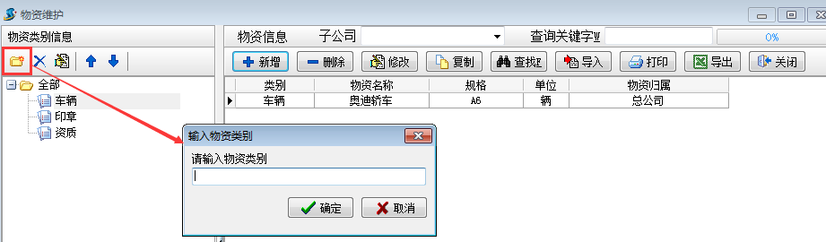 物資類別信息編輯工具欄是用來(lái)編輯物資分類。