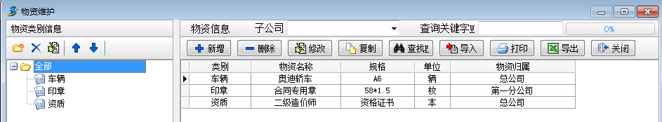 備注:物資歸屬一定要設(shè)置好,方便于總公司和分公司分別管理自己的物資。