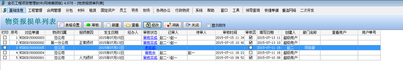 【物資報損單】是用來報損物資的業(yè)務(wù)單據(jù)。 類似【材料報損單】或者【設(shè)備報損單】,一個是針對物資報損,一個是針對材料或者設(shè)備報損。