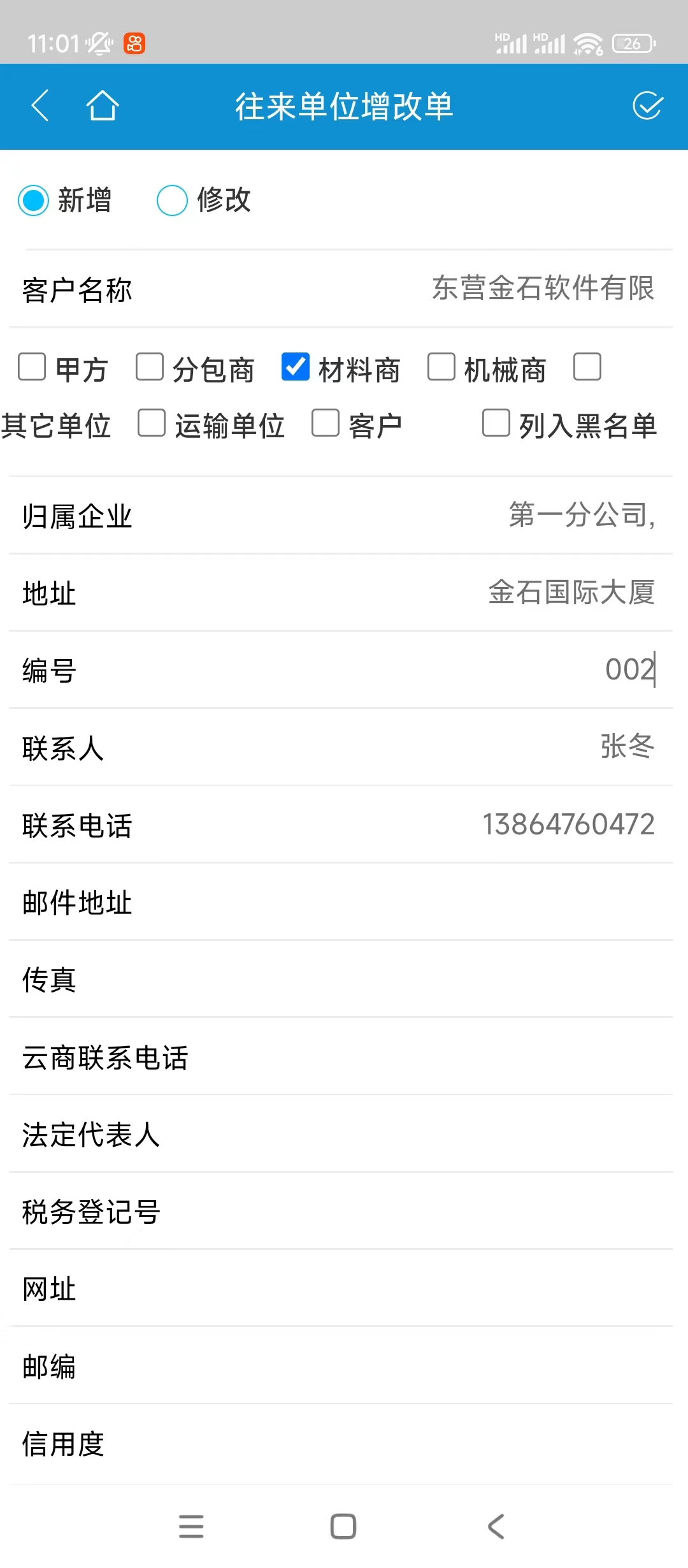 同樣手機(jī)功能中也可以填寫(xiě)或者審核往來(lái)單位增改單