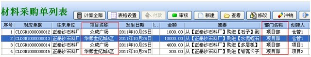 (2)材料采購單、材料銷售單、材料退貨單、外包人工單、外包機械單、運輸車輛單、租賃結算單、其它費用單、設備采購單、設備維修單、設備退貨單、付款申請單、付款單、收款單 (涉及財務的這14個單據) 對于【財務部】也不受該條件限制,可以查看所有部門單據。