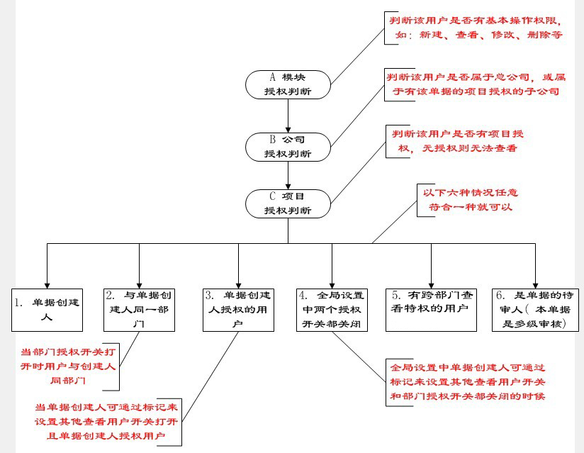 如上圖:王五規屬于B、C公司,是【公司經理】可以看到B、C兩個公司的所有部門、所有授權項目有關的業務單據。