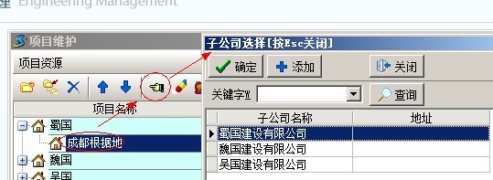 B:公司授權判斷,是指判斷當前用戶是屬于總公司還是子公司,如果屬于子公司,判斷當子公司是否有項目授權。用戶所屬公司的設置和子公司項目授權的設置如下圖: